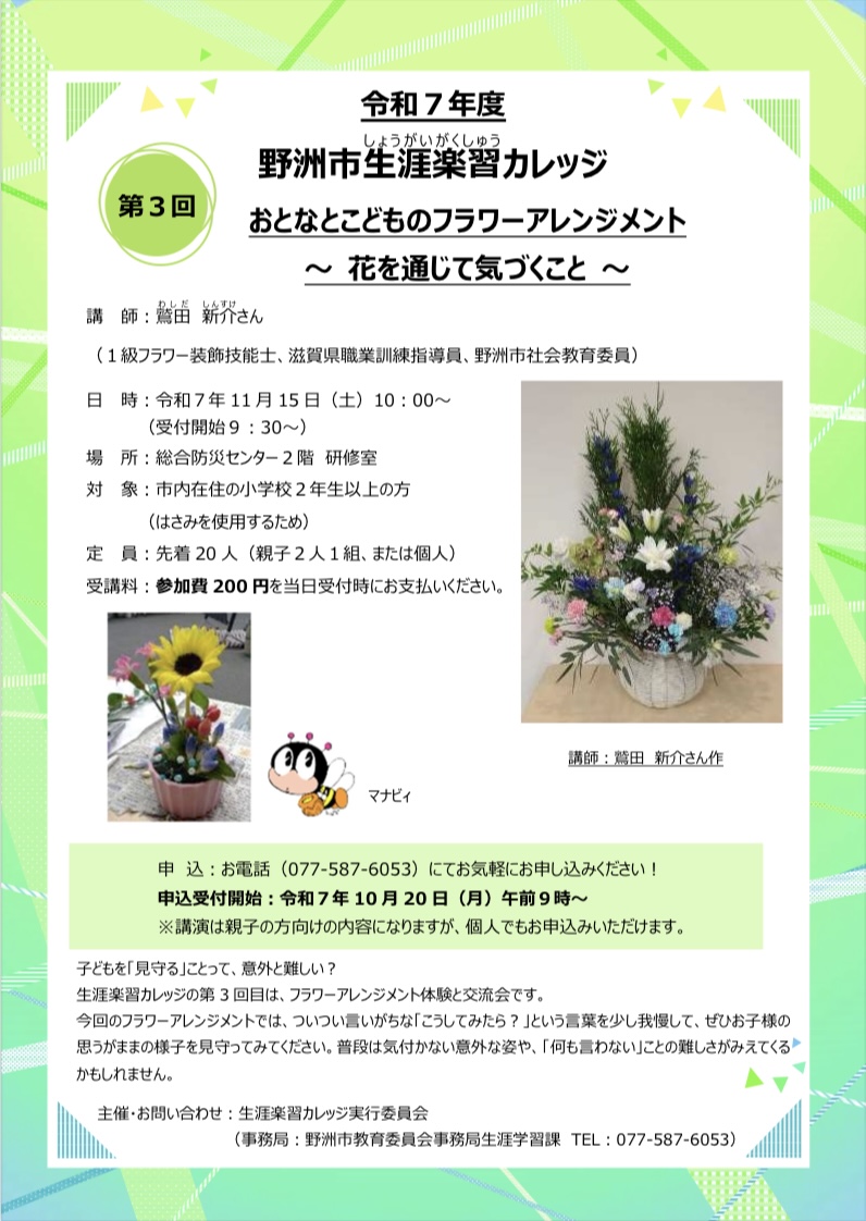 (事務局:野洲市教育委員会事務局生涯学習課 TEL:077-587-6053)